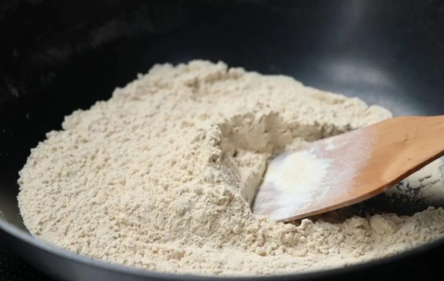 做炒面时火不能太旺,以免把面粉炒糊。一次不宜炒得太多,多则不易均匀地炒透,即便都炒透了也不便于长时间保鲜存放,一旦受了潮气,味道就大打折扣了。