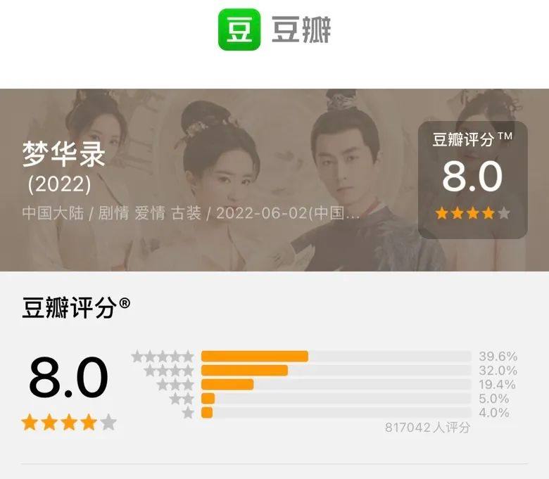 产量不高,靠着强大的国民度和统一了审美的美貌,流量管够,却也难得地维持了(电视剧)口碑中上的风评。这条路子,听起来中庸,似乎不上不下,但要完成可不容易。《梦华录》角色讨论、艺人讨论还是口碑评价,各项数据的反馈上都扛住了爆款的标准。