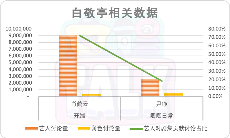 两部剧集播出期间,白敬亭微博粉丝增量合计超过120万,角色讨论度上,《卿卿日常》中的尹峥一角要高于《开端》的肖鹤云,艺人对剧集贡献度上,后者的72%则远高于前者的18%。一方面,《开端》垂类属性较为明显,另一方面也再次说明了古装题材剧集作品的有效力。