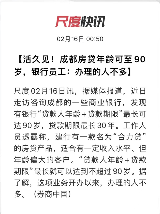80、90、100岁!全国多地启动高龄房贷,活到老贷到老