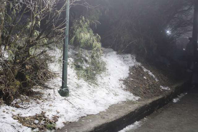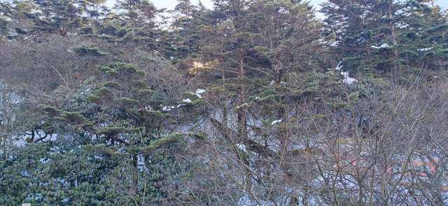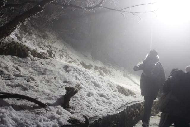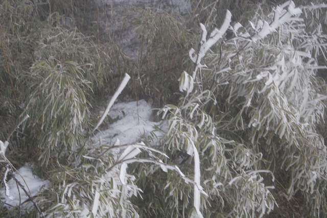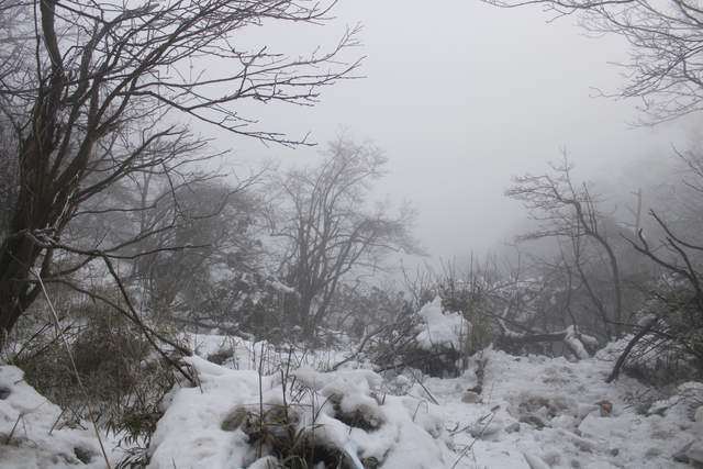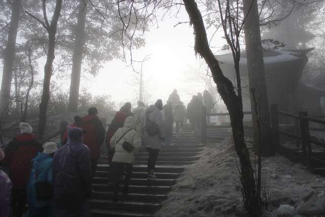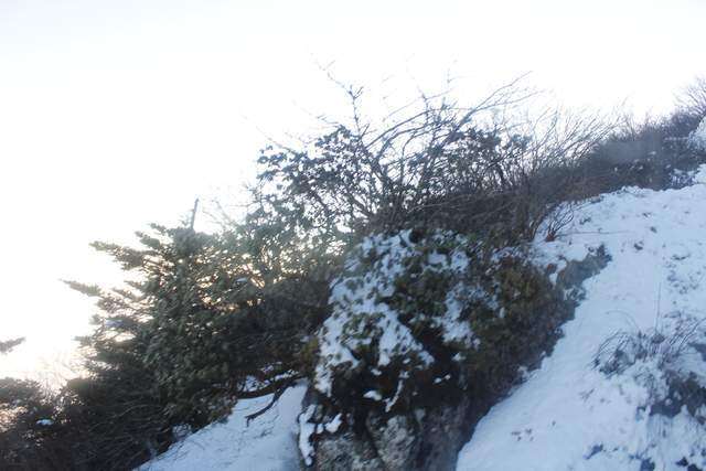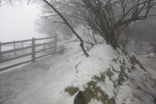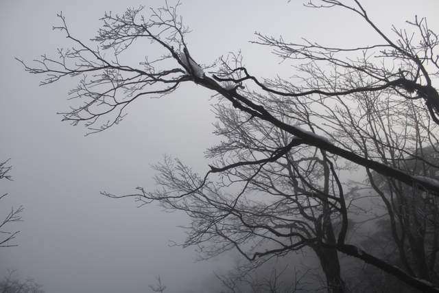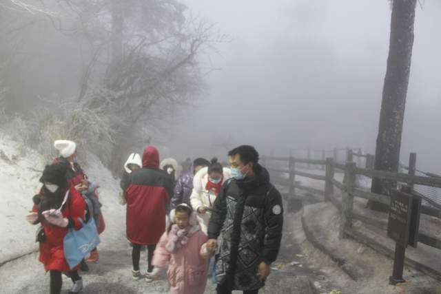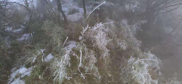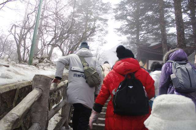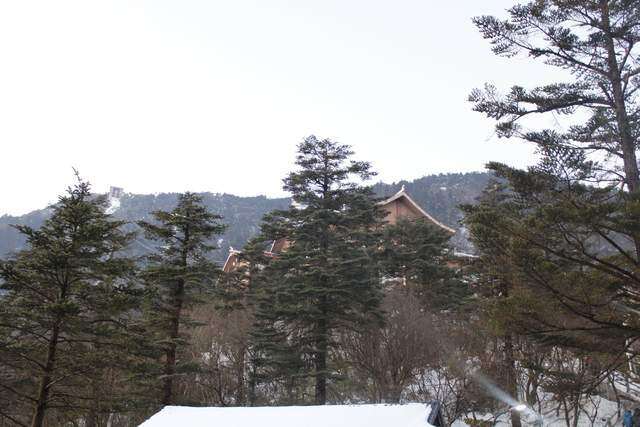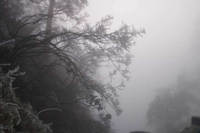能见度好一些的时候,便拍下了一些峨眉山雪的照片。彼时,树木并未恢复生机。