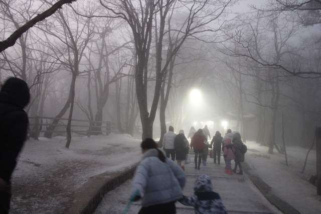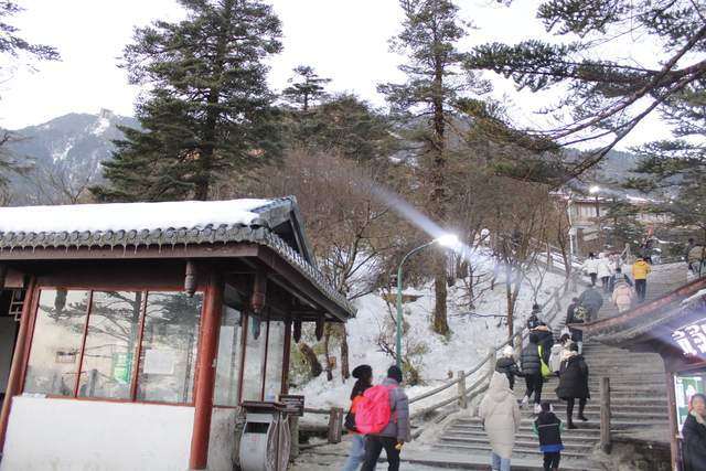 文旅君是把车开到了零公里的停车场,然后排队坐摆渡车上山的。大概因为是冬季,山道积雪,行车不安全,不然车似乎是可以开到雷洞坪的。零公里周边的停车场很多,有的人甚至对停在公路边空地上的车辆也在收停车费,但官方停车场是离摆渡车乘车地最近的这个吧。
