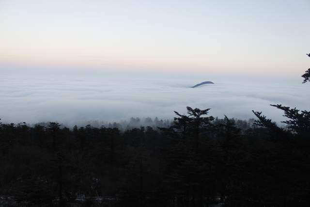 峨眉山主要有四座山峰,分别是大峨山、二峨山、三峨山、四峨山(还挺萌的)。不知道在远处云海之中微微露出头来的是几峨山?