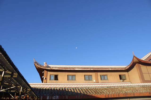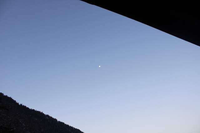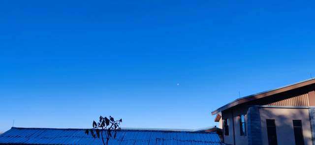 此时月亮还可以看见,这样湛蓝的天空是四川盆地不多见的。