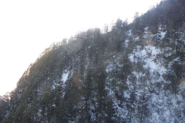 很快缆车便开到了山的背阴处,在这里就看不见太阳了。