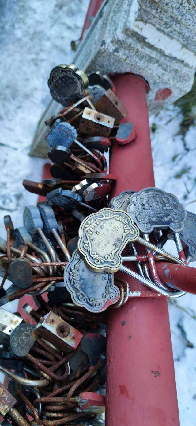 文旅君继续往山顶走去,路上看到一个地方有很多的同心锁。