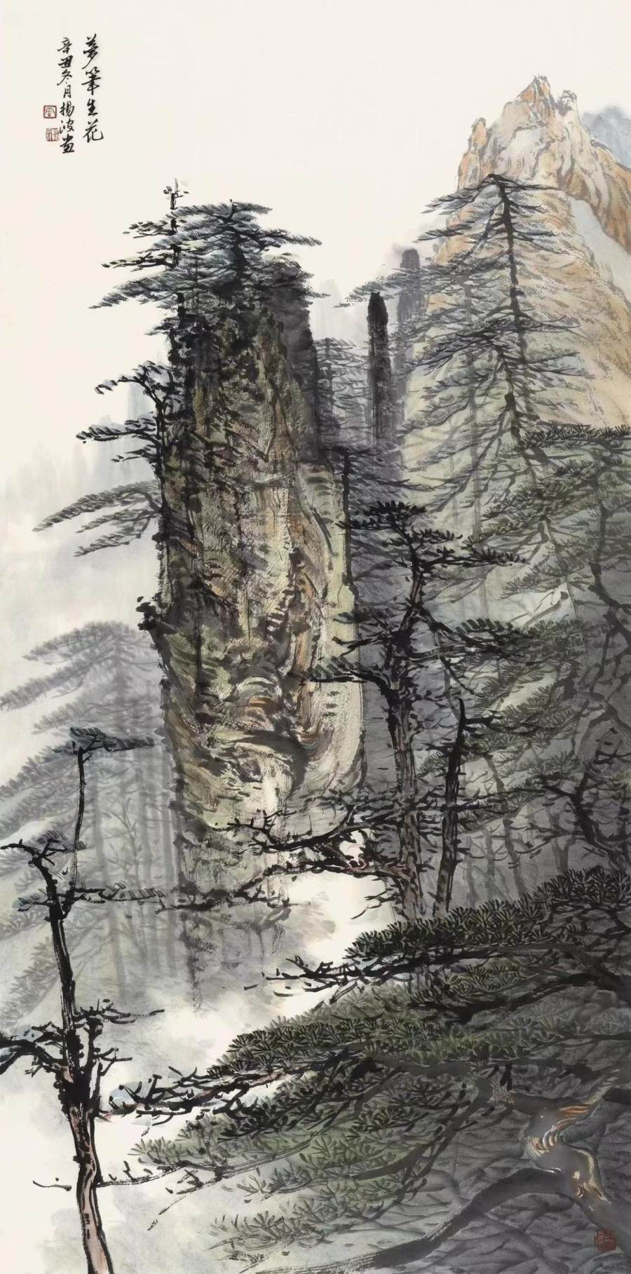因为自小就打下扎实的笔墨功夫,他在山水画创作上很早就体现出深沉醇厚的品质。在笔墨语言上,扬波的山水画创作并未脱离传统的路数,用笔用墨均呈现出很好的传统修养,但色彩却又超脱了传统的束缚,鲜明、亮丽、丰富。在章法结构上,扬波的山水画显然深受写生的影响,并将写生的观察方法与传统“三远法”进行融合,所以能别出新意,活泼自然。在创作路径上,扬波坚持在自然中寻找创作资源,在现实山水中获得滋养,以“真山水”为创作旨归,所以能突破教条主义的束缚,获得创作发展的巨大空间。