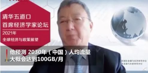 4)清华大学国家金融研究院院长 、IMF原副总裁朱民:中国现在人均月流量为9GB,中国人均月流量十年后或达100GB。