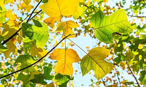 树叶变色的原因与其蕴含的化学物质——叶绿素有关。当秋天来临时,白天的时间比夏天较短,气温也较低,树叶因此停止制造叶绿素,剩余的养分则输送到树干和树根中储存。树叶中缺少了绿色的叶绿素,致使其它化学色素因而显现出来,所以我们多看到黄和褐等颜色的树叶。