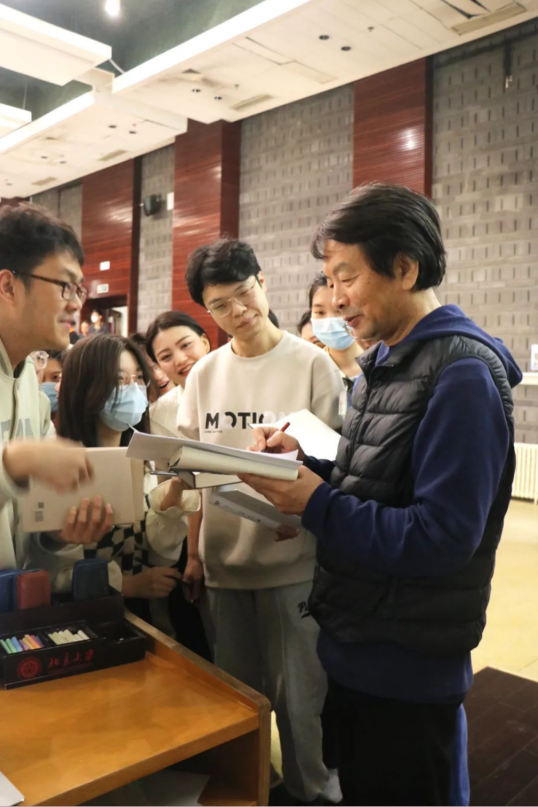 讲座结束后,刘震云为同学们签名