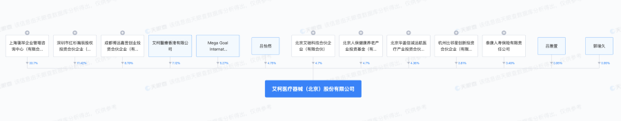 同时,比邻星创投持股3.73%,泰康保险旗下泰康人寿持股3.41%,上海远霁持股2.20%,郭瑞久、吕雅萱均分别持股0.93%,其中郭瑞久为艾柯医疗董事、副总经理,吕雅萱为该公司副总裁。