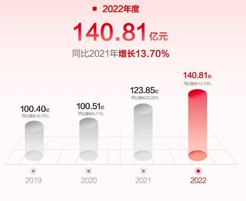 根据两份财报披露,2022年,公牛集团实现营业收入140.81亿元,同比增长13.70%;实现归属于上市公司股东的净利润31.89亿元,同比增长14.68%。而在2023年第一季度,其营业收入为33.34亿元,同比增长8.31%;归属于上市公司股东的净利润为7.36亿元,同比增长14.74%。