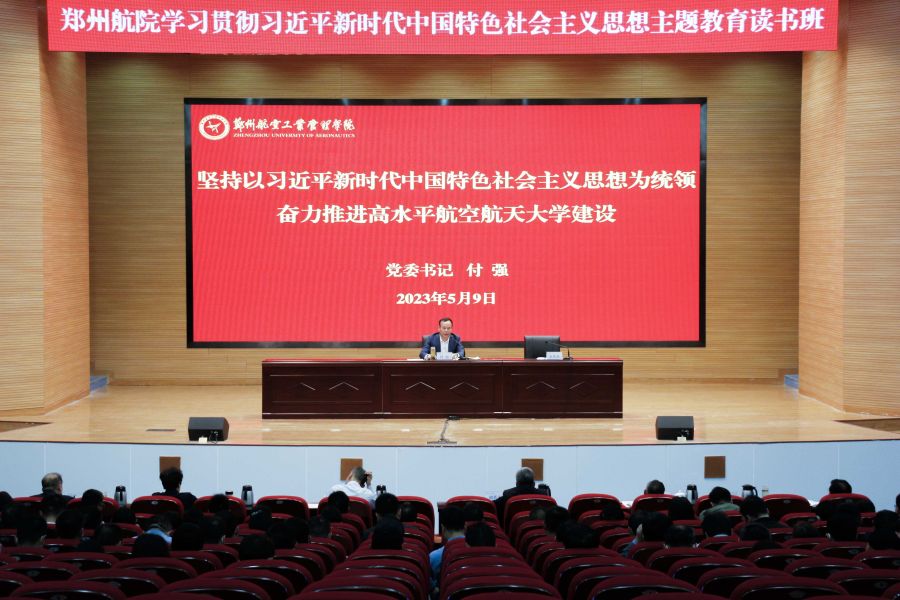 5月9日,郑州航院学习贯彻习近平新时代中国特色社会主义思想主题教育读书班开班。校党委书记付强出席开班式并作首场专题党课辅导。校党委副书记余传杰主持开班式。