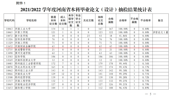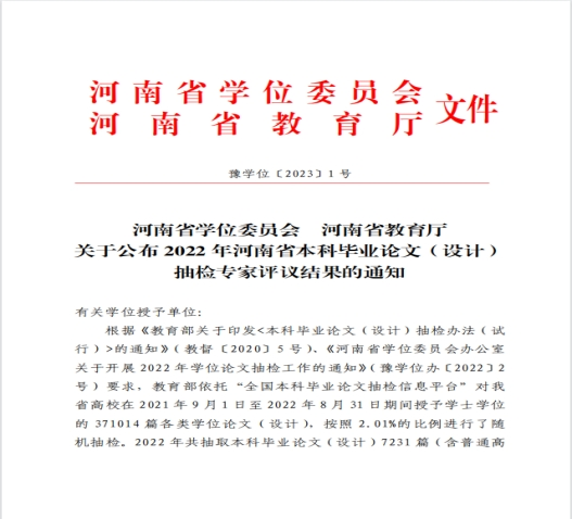 近日,河南省学位委员会、河南省教育厅下发了《关于公布2022年河南省本科毕业论文(设计)抽检专家评议结果的通知》(豫学位〔2023〕1号)文件,公布了本科毕业论文(设计)抽检专家评议结果。河南财政金融学院被抽检本科毕业论文(设计)评议结果为全部合格,无“存在问题毕业论文”和“高校未上传论文”,合格率达100%。