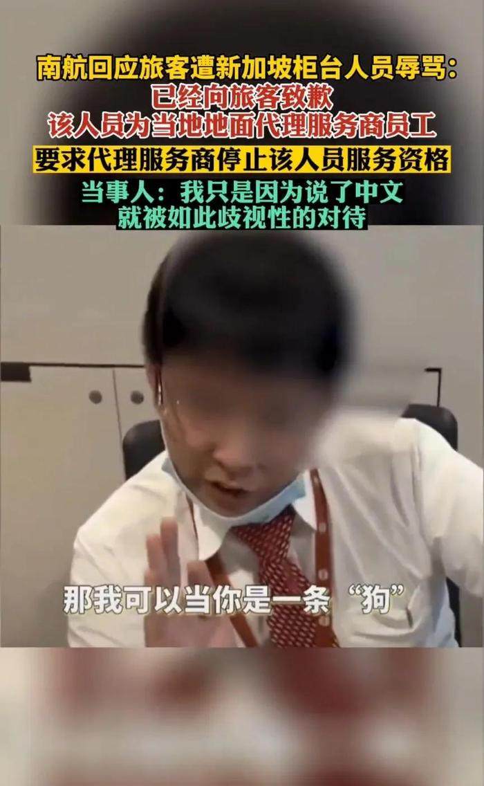 目前,我们已要求代理服务商停止该名人员服务南航新加坡营业部的资格。
