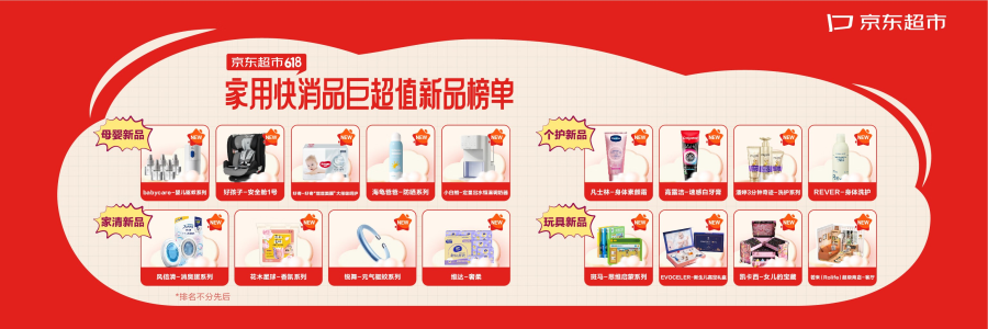 京东618正如火如荼的进行中,6月2日,在京东超市618家用快消品趋势及新品发布会上,京东超市正式发布家用快消品行业首份618“趋势新品榜”和“热销爆品榜”,并首次公布京东超市选品方法论。