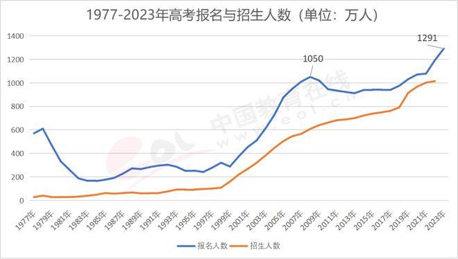 近日,中国教育在线发布《2023年高招调查报告》。报告内容显示,2023年高考报名人数达到1291万,净增长近100万,高考报名人数持续创下新高,核心原因还是中职为代表的学生规模化进入高考,而非适龄人口的变动,从一个侧面反映了高考改革的重要成就之一:为广大中职包括高职学生拓宽了升学路径。