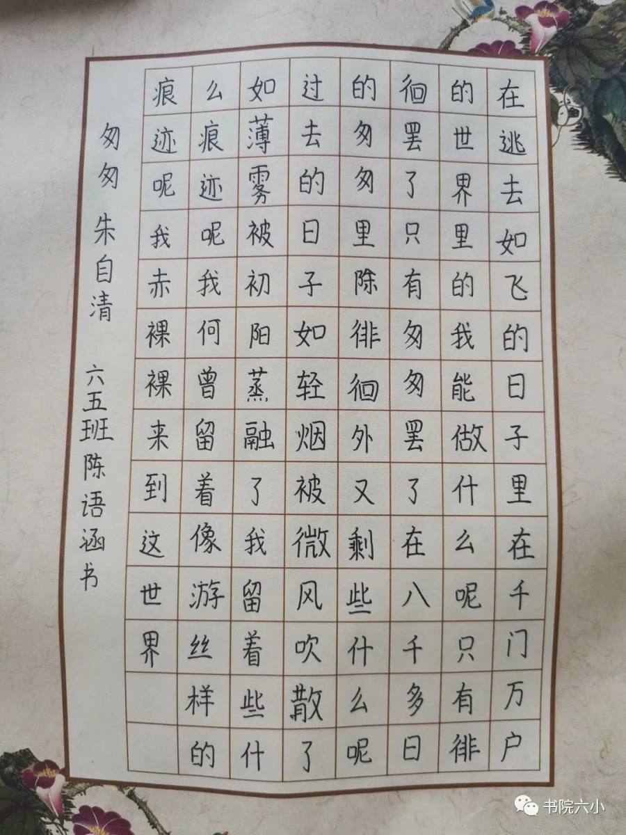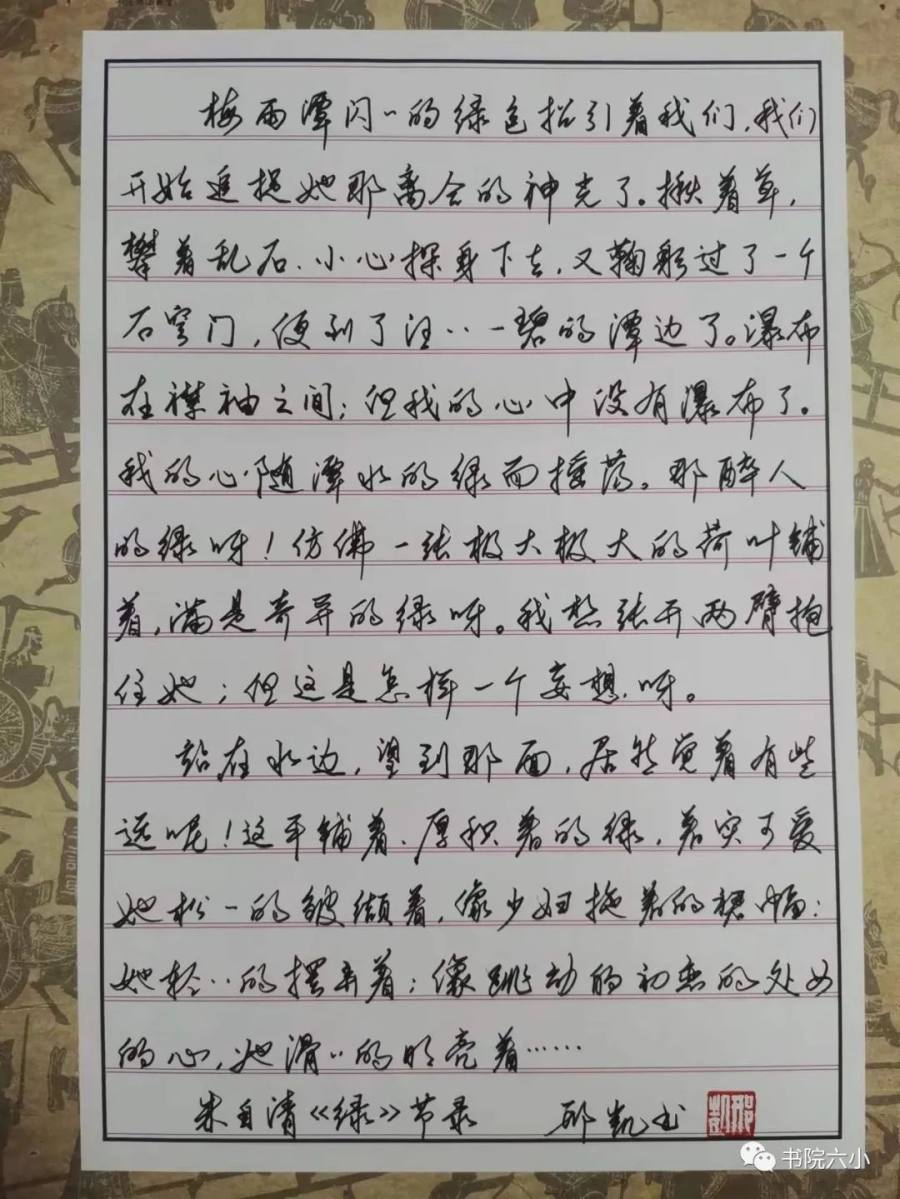 2023年6月25日上午,南阳市第六小学院内花艳草绿,荫浓果香,三十张精美的硬笔书法作品版面镶嵌满了这座“四美庭院”引来师生们的驻足品鉴,或雀跃谈笑,或指指圈圈,或竖起拇指,或啧啧赞叹,仿佛是端午后的又有一个节日。这是该校书法教学成果展览活动现场,一至六年级各班分别展示了本学期书法学习的优秀成果,竞相闪耀争辉。