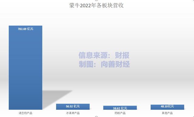 财报数据显示,在2022年,蒙牛上述四块业务分别贡献收入的84.5%、6.1%、4.2%和5.2%。