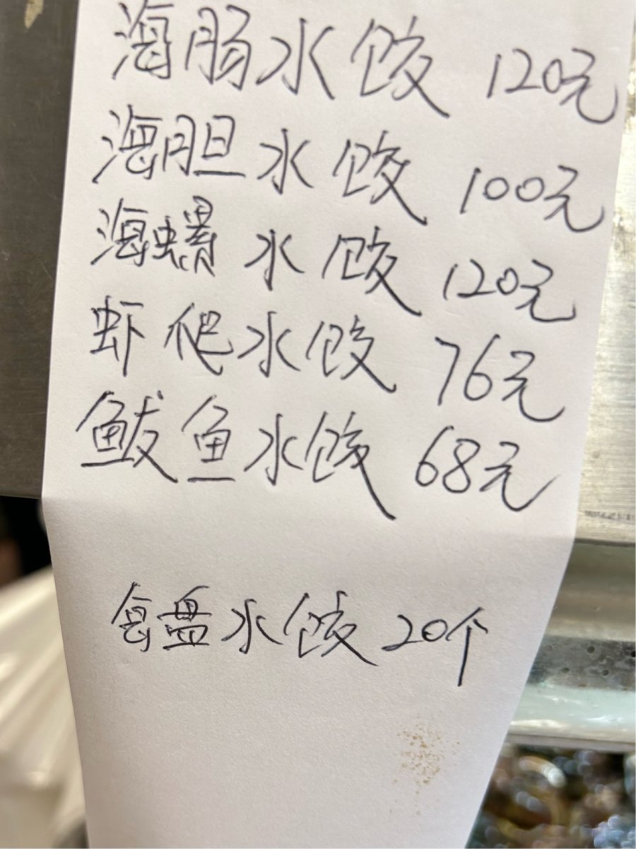 海肠水饺真贵啊!一份40个120,一个合3块了。