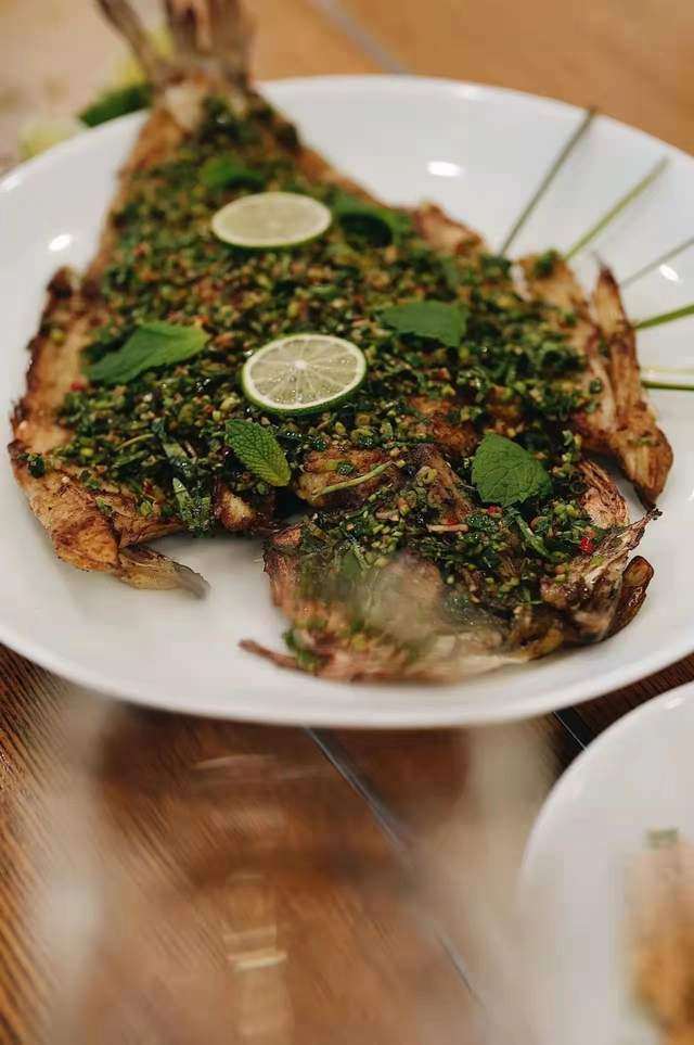 香茅草烤鲈鱼,是道傣味菜。西双版纳、普洱、临沧、德宏一带广为流传。腌制好鲈鱼,用当地漫山遍野可寻的香茅草缠裹绑好,茅草其实是香草,经小火细烤,味入鱼体,鲜香味极美。