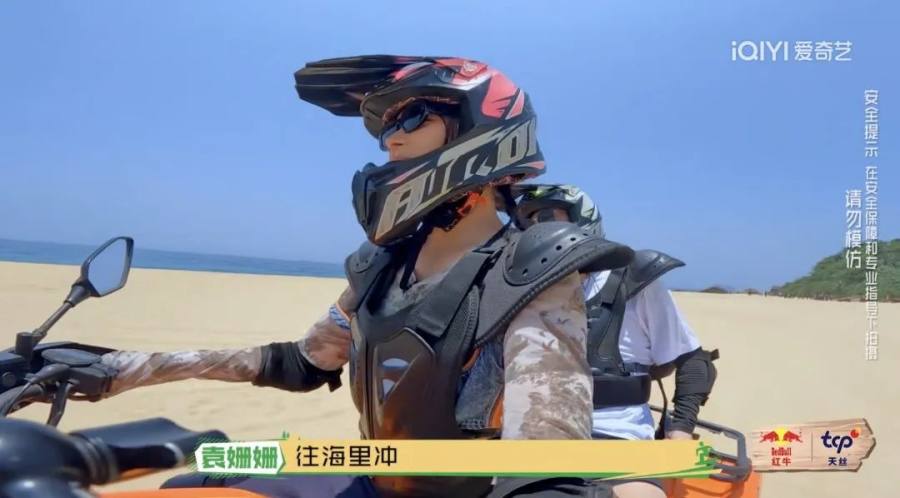 骑着全地形越野车到达海边时,姚琛想要“放飞自我”的心情达到了顶峰。加速启动时,旁边的张震岳紧随其后。袁姗姗载着老舅(董宝石)虽然慢了一些,但玩嗨了时,袁姗姗大喊“往海里冲!”吓得老舅赶忙接梗:“放我一马,我还有家庭。”