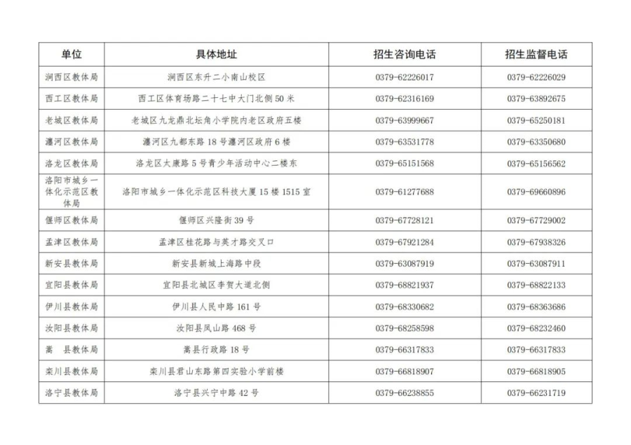 2023年洛阳市义务教育学校招生入学联系方式