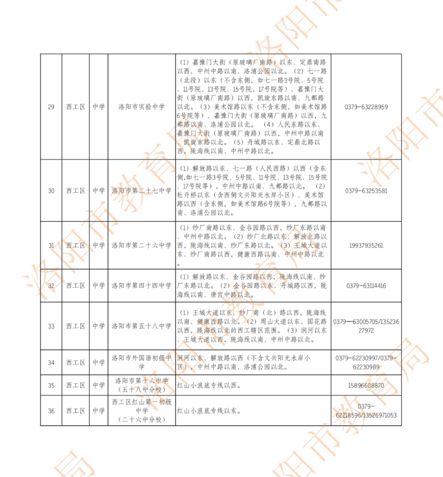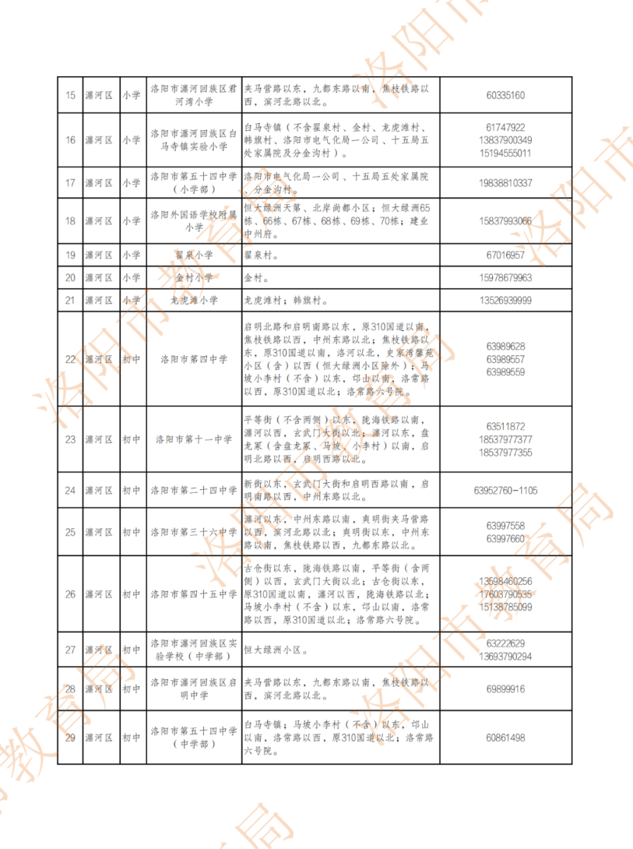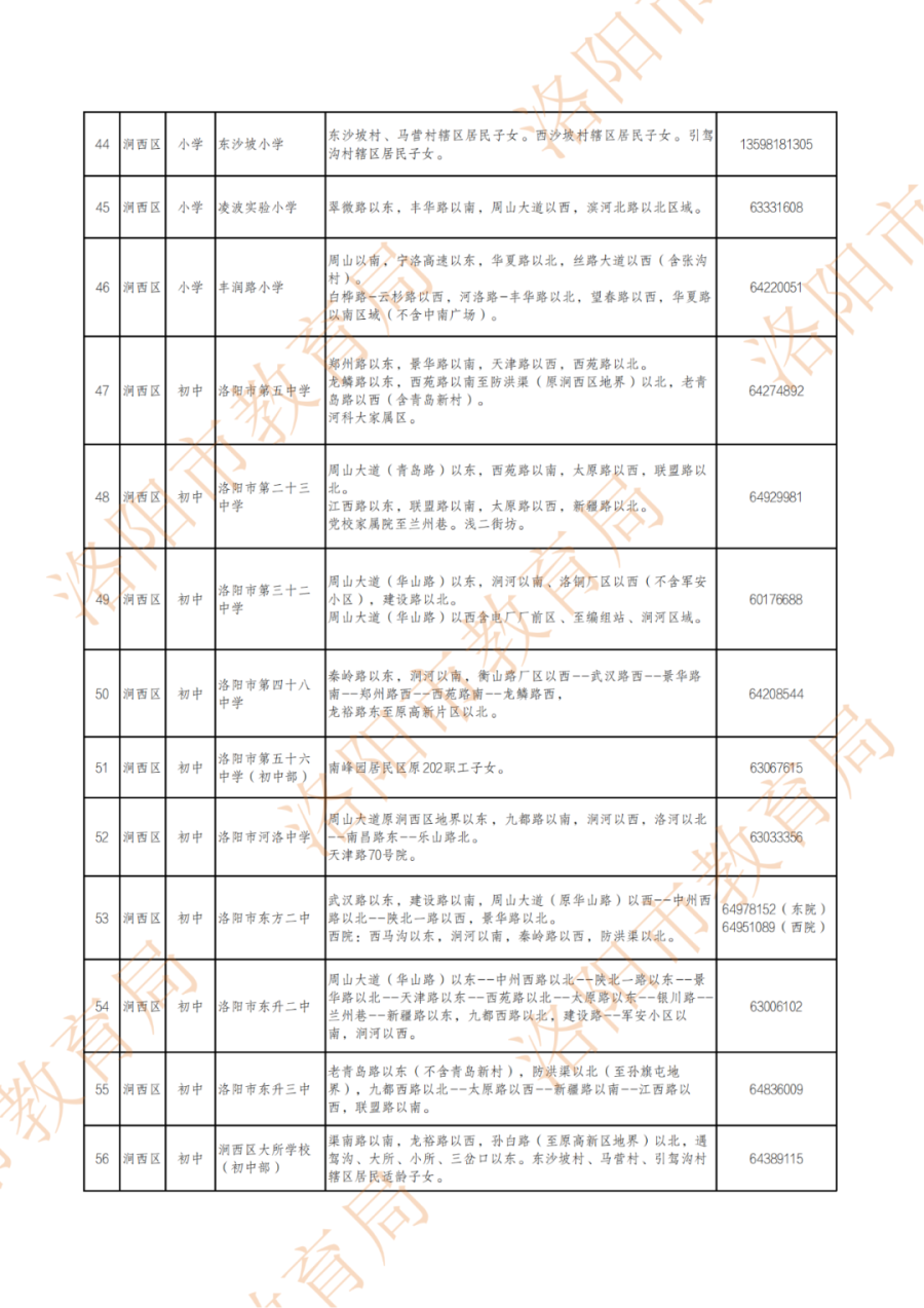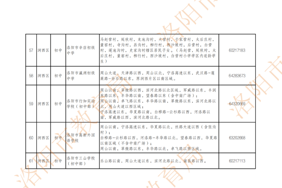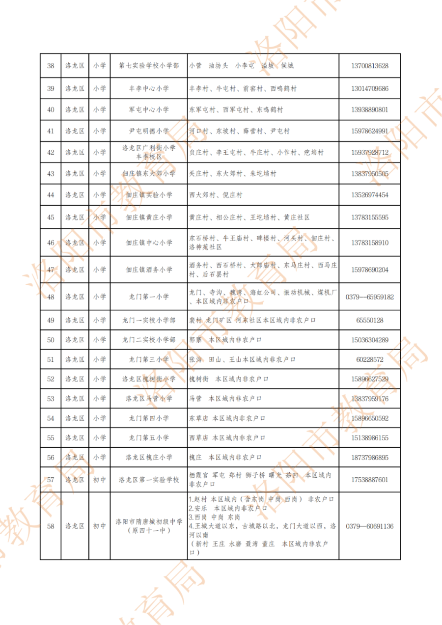 洛阳城市区小学、初中划片范围公布!