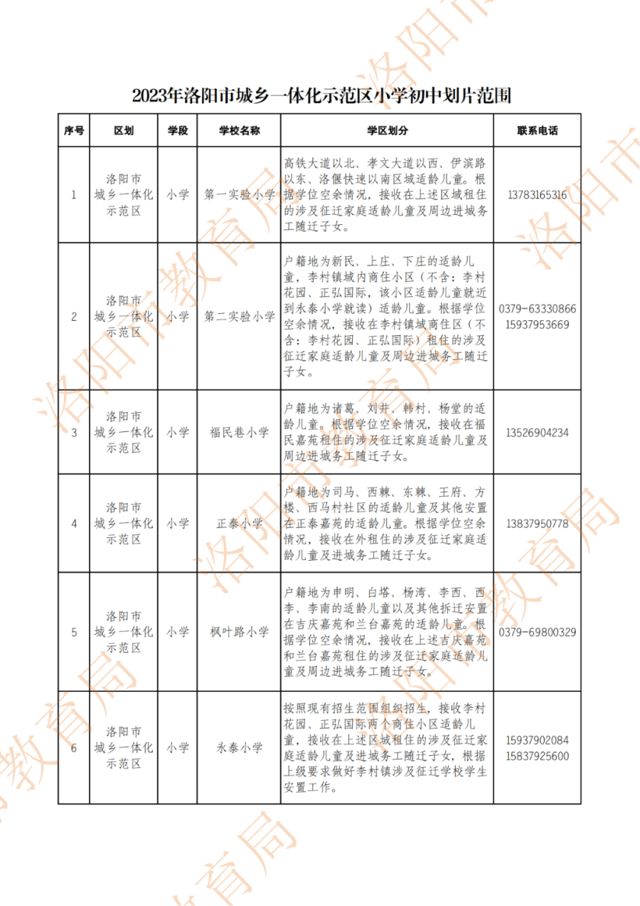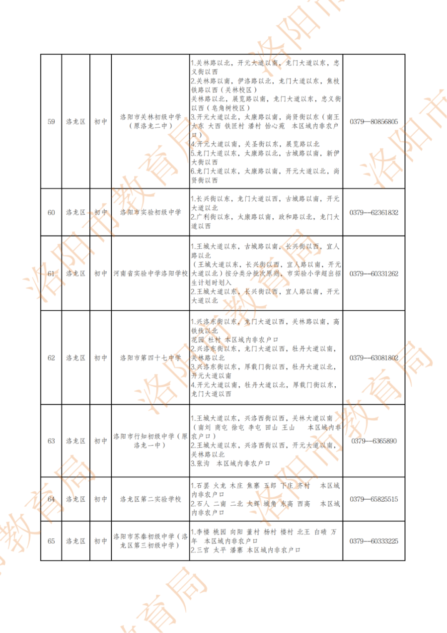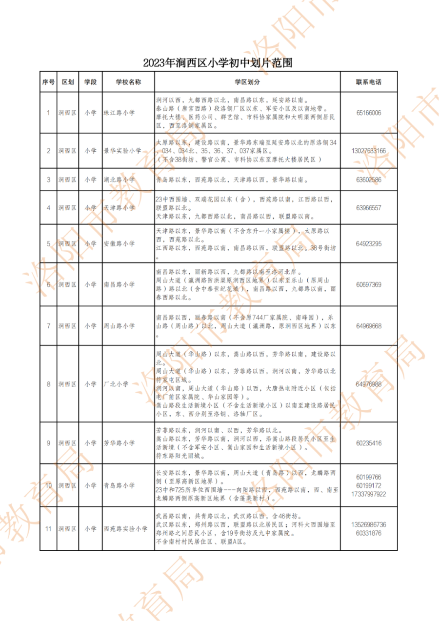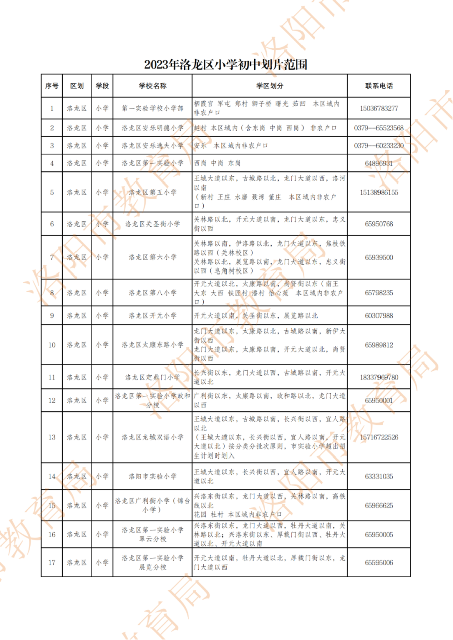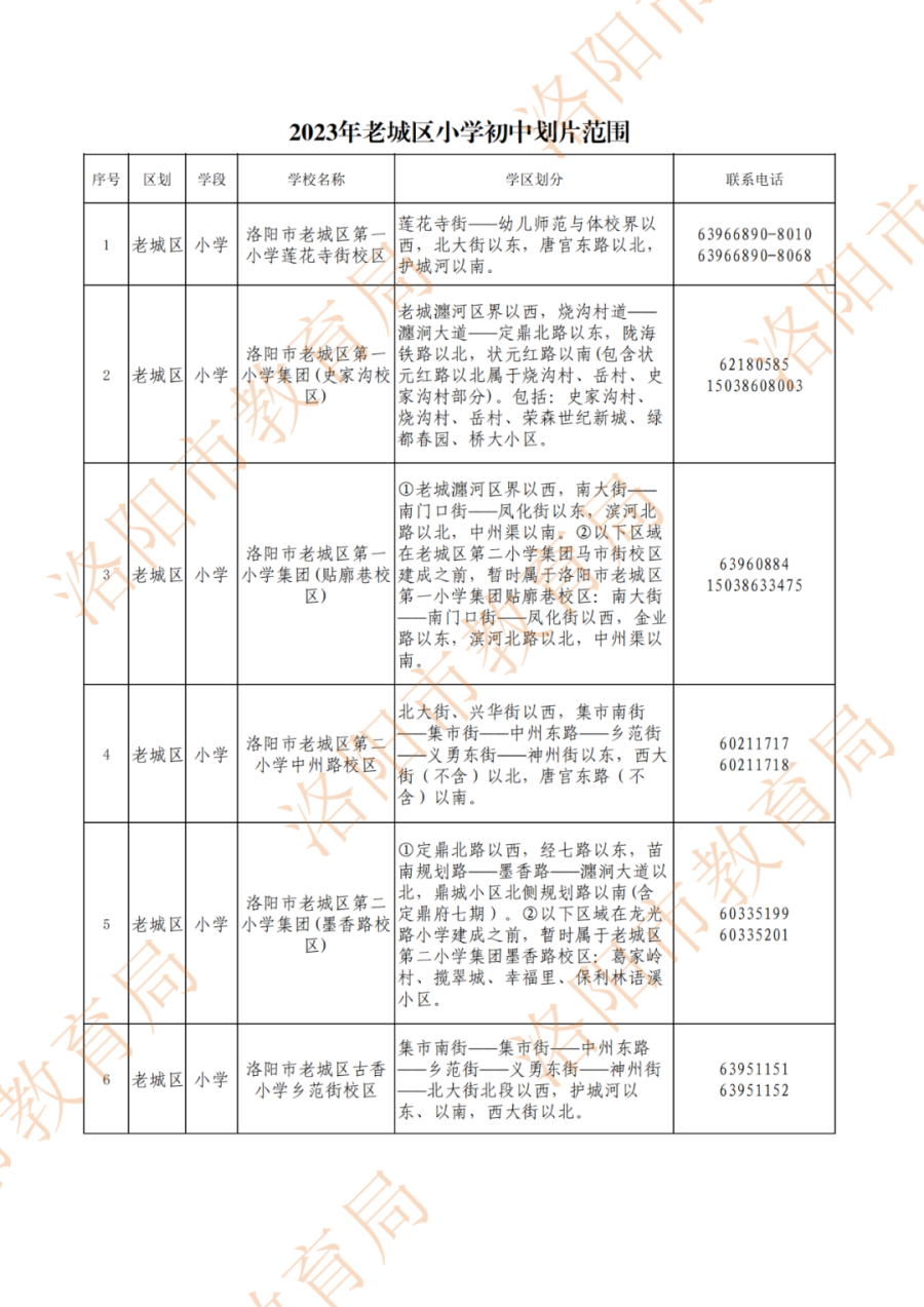 洛阳城市区小学、初中划片范围公布!