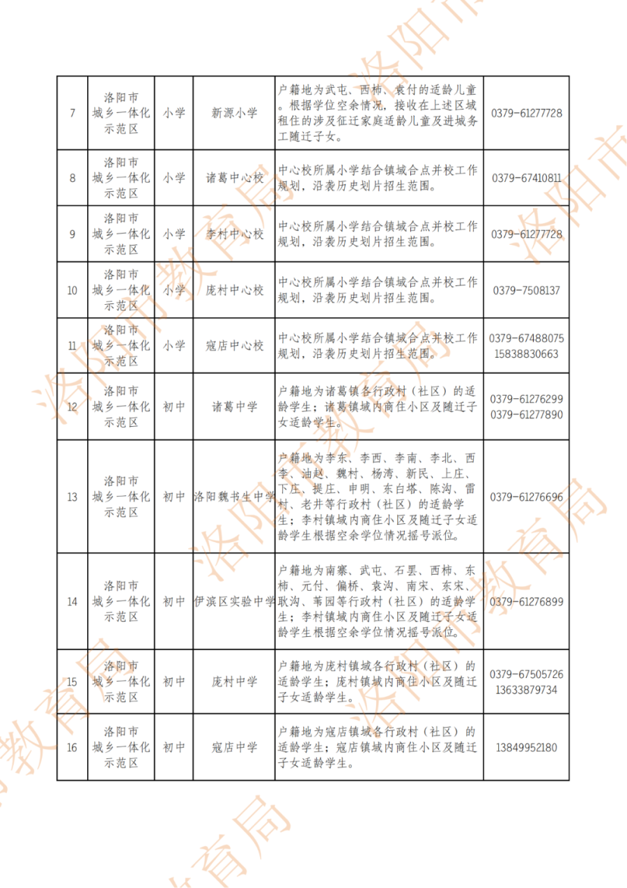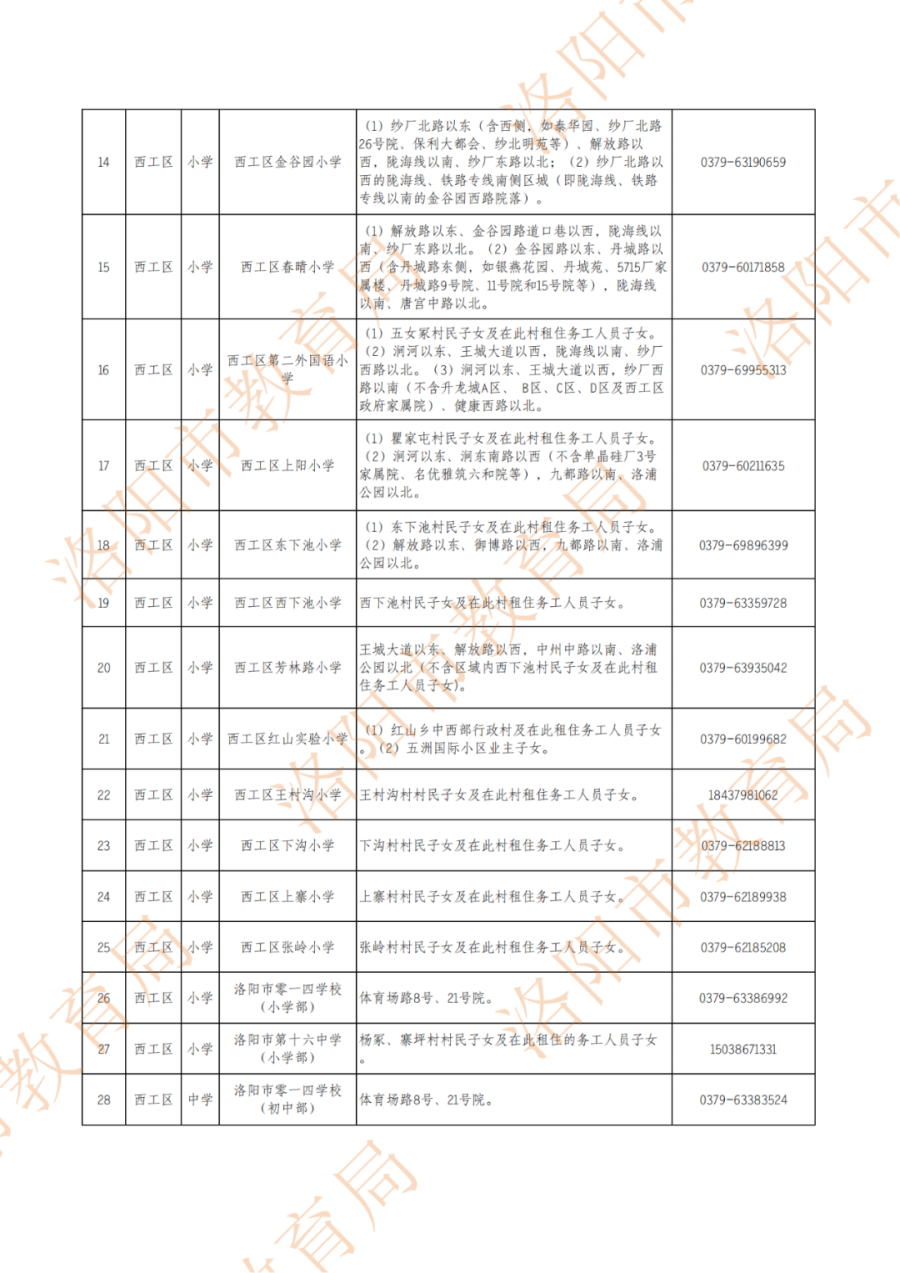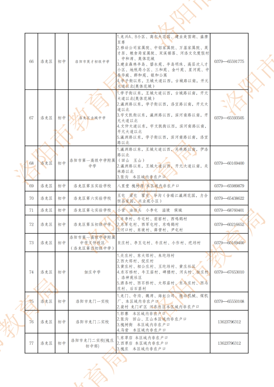 洛阳市最新小学、初中的划片范围!
