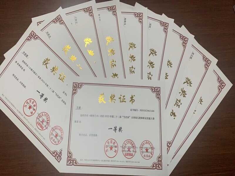 本次大赛由当代学前教育网和中国人民大学书报资料中心《幼儿教育导读》杂志社联合主办,是一项大型高水平全国学前教育专业赛事。该校参赛学生在指导老师的精心指导下积极备赛,参赛作品涵盖教案、玩教具制作、环境创设、儿歌弹唱、绘画和故事讲述等不同种类。参赛作品主题鲜明、种类丰富、教育性强,注重过程的展示,体现了学生扎实的理论基础和过硬的专业技能。