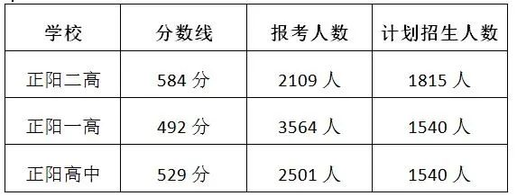 一、根据全县学生中考成绩和报考情况,正阳县普通公办高中录取分数线划定为: