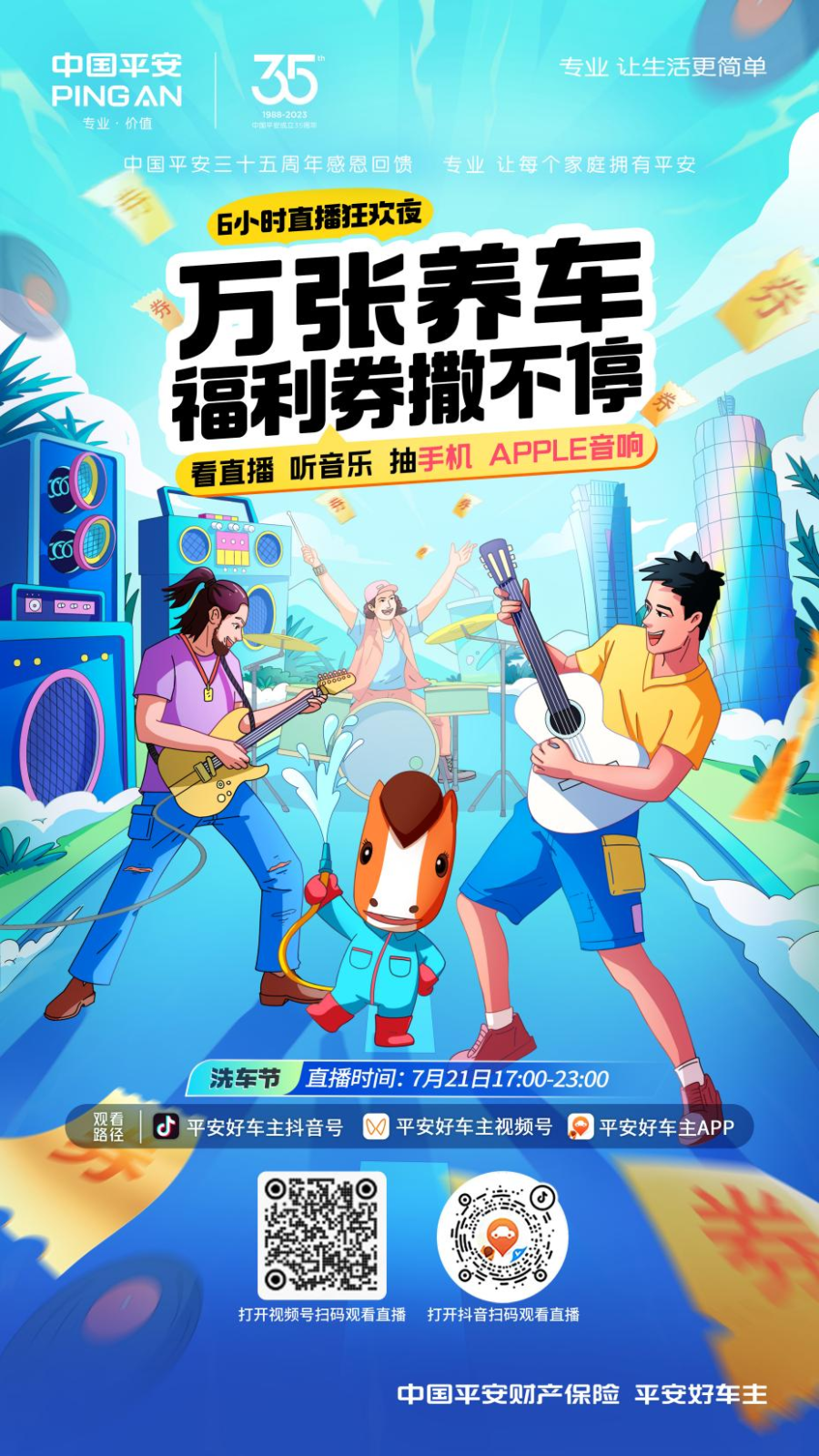 不用烦!7月21日17:00,锁定平安好车主安抖音号、视频号,观看好车主洗车节爆点日直播,你想要的干货知识、保险好物统统都有,还有乐队演出、礼券抽奖……多重惊喜等你来!