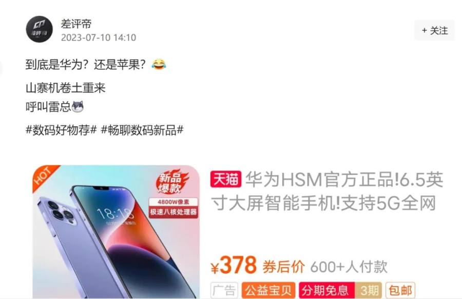 “这到底是华为,还是苹果?”今年7月10日,知名数码博主“差评帝”就发微博质疑。