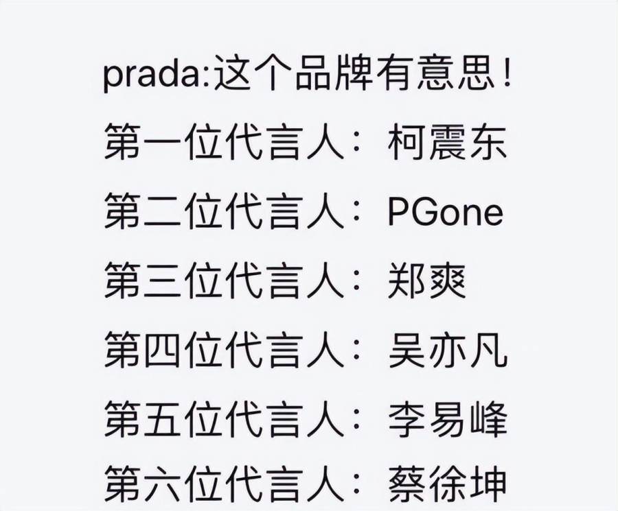 不久前,蔡徐坤的塌房事件又一次将Prada推上舆论风口。这已经不是Prada第一次陷入代言人的负面争议中,网友细数了该品牌历届合作艺人的翻车事件,包括此前合作的郑爽、李易峰、吴亦凡等。高频的塌房速度,也让Prada背上了“代言魔咒”的负面标签。
