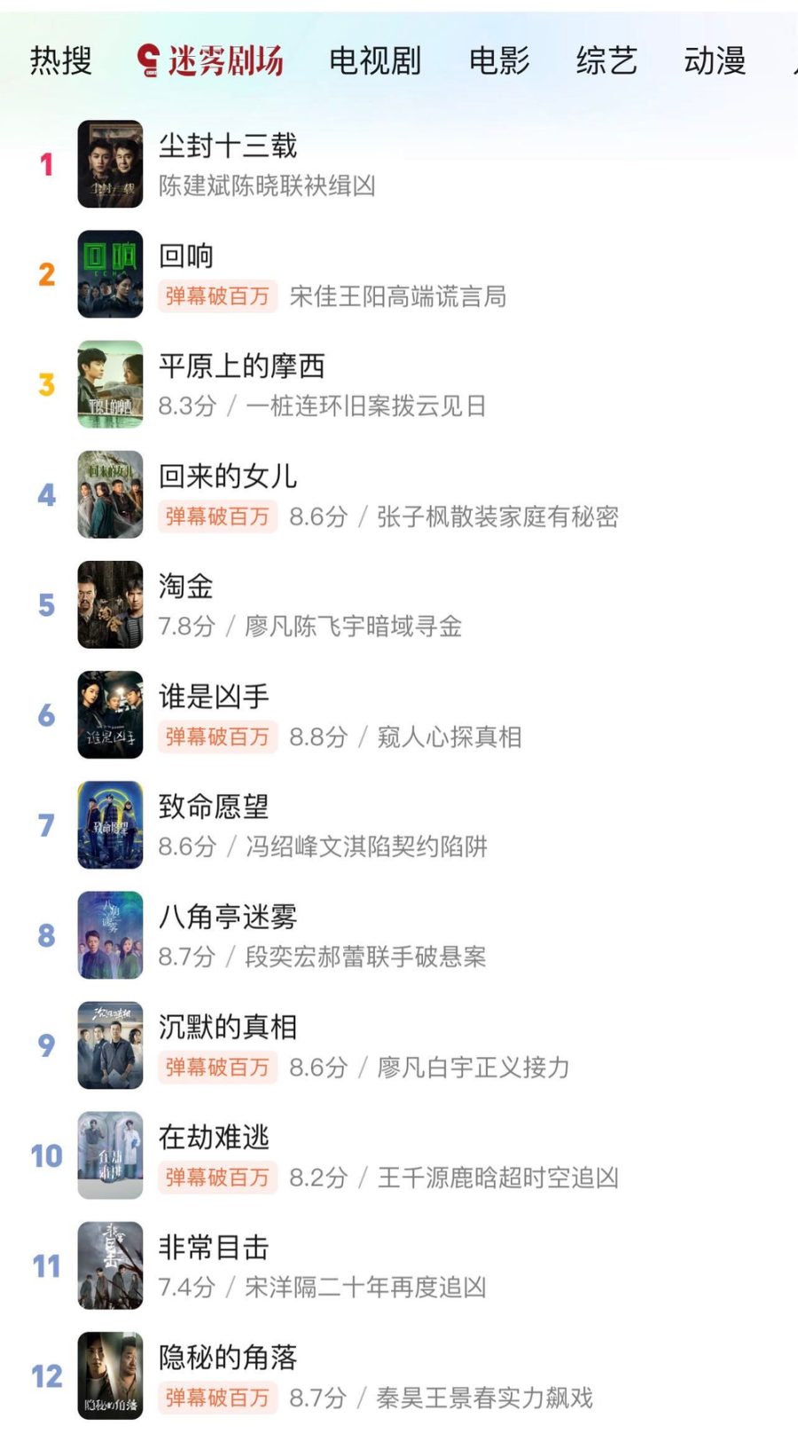 爱奇艺凭借「迷雾剧场」横扫国产悬疑厂牌的同时期,优酷也对该赛道跃跃欲试,投入了不少项目作为尝试。但那个时候腾讯在干嘛?
