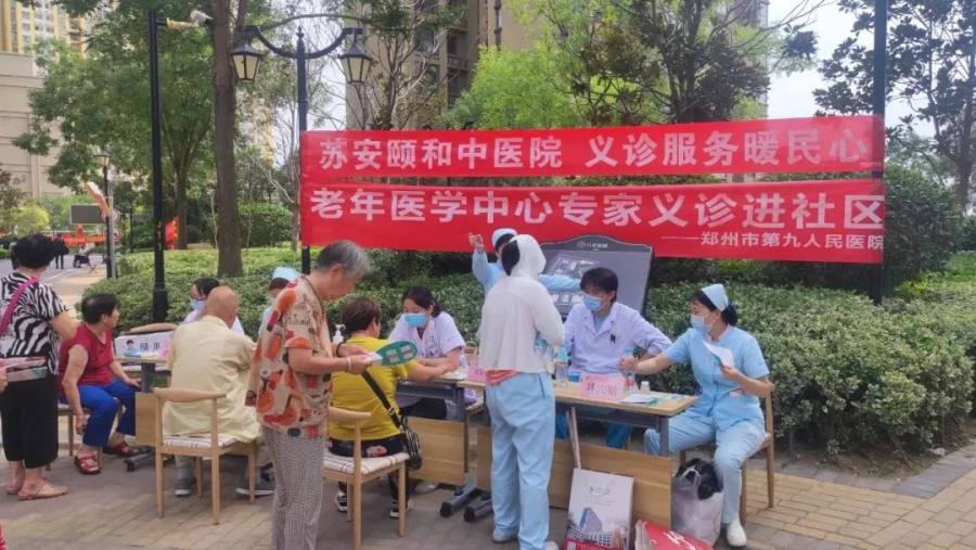 7月24日上午,郑州高新苏安颐和中医院携手郑州市第九人民医院郑州市老年医院专家,来到五龙新城香馨园小区开展“服务百姓健康行动——关注健康,关爱老人,苏安颐和伴你行 ”主题义诊活动。