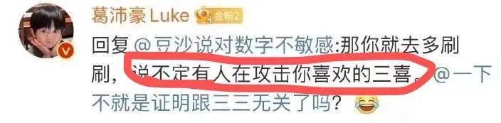 但原本话题都只在大人之间流转,直到葛沛豪在其微博评论区直接打出了“三喜”,以及奚安娜直接@了另一组嘉宾谭信泽(三三)的微博。直到这几天高挂热搜之上,网友们寻着常规的舆论思路,解读成年人的节目内节目外的种种行为,也开始放大孩子们之间玩闹的行为互动解读上。