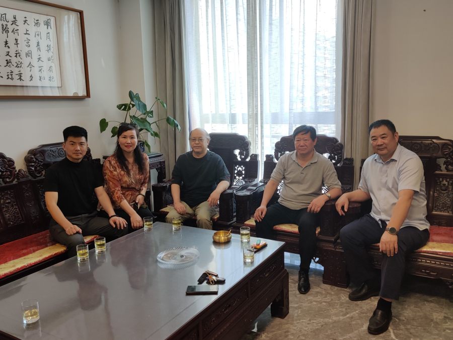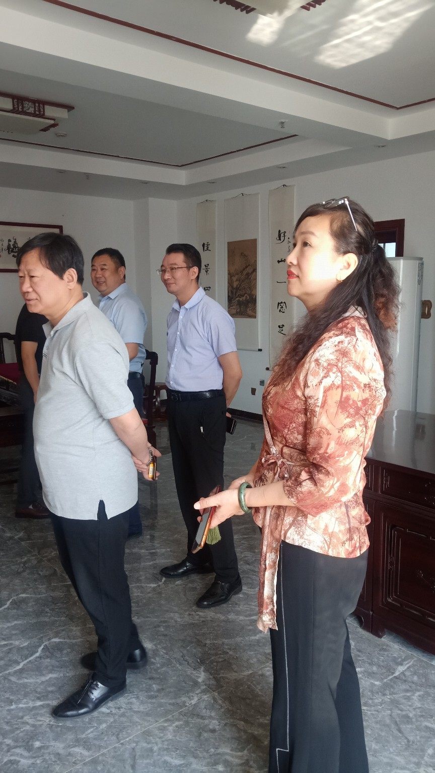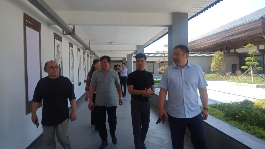 近日,九德画院院长耿春江、九德画院艺术顾问、清华大学美术学院客座教授王凤年、副秘书长葛红霞及杨总等一行应邀参观考察了郑州长城书画城。书画家们的到来受到了王永涛王总、著名相声演员(郭德纲弟子)尹九宴、网络运营中心普总的热情招待。在王总的带领下大家参观长城书画城。