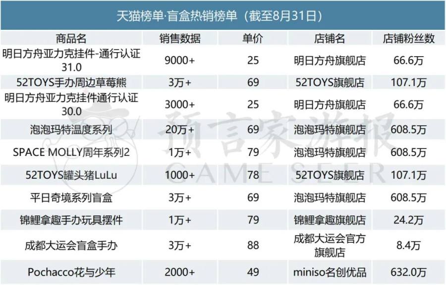 盲盒和手办:明日方舟热销,锦鲤拿趣独占3席