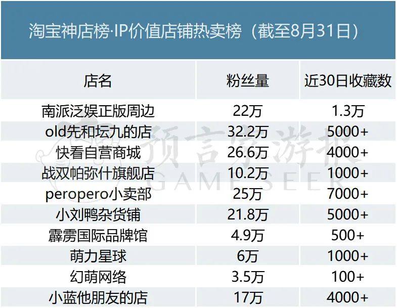 IP衍生品:漫画衍生店头部格局稳定,IP价值店铺新上榜店铺多