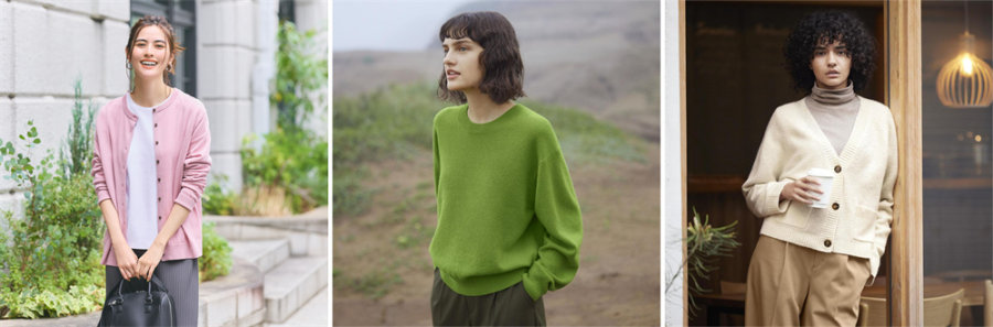 摩登质感,悦享「美」日新风尚!五大质感针织,通勤日常简单高级:百变质感一件尽有,全新针织系列以高级质感、摩登设计、出彩穿搭,顺应消费者对色彩、设计、品质、高性价比的多重需求。精纺美利奴羊毛针织,国际羊毛局认证100%纯羊毛,可机洗好省心,穿出精致“女神”范;舒芙蕾针织,如舒芙蕾般蓬松柔软,不易刺痒,款型潮流,时髦穿搭超吸睛;柔软绵羊毛针织,100%绵羊毛,温暖厚实,活力纯色/时尚花色,明媚多彩随心搭;时尚针织,短款茄克/V领开衫,多样廓形,时尚前卫;羊绒针织,100%山羊绒,轻松拥有“平价高质”的性价比之选。