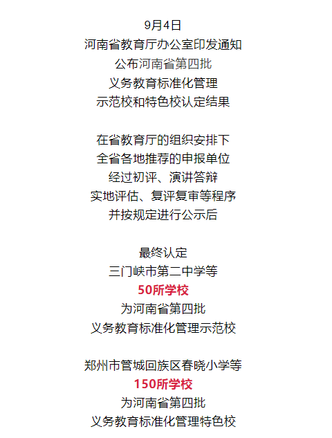 喜获“河南省第四批义务教育标准化管理示范校”荣誉称号!