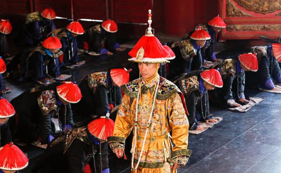 不仅跪拜礼的形式不同,根据对方的尊贵程度,跪拜的次数也完全不同,比如,官员给皇帝、子孙给祖先以及常人给神佛要行三跪九叩之大礼。对王公行二跪六叩礼,既不能多叩,也不能少叩。多叩了,那是越制,要受到处罚,少叩了,那是对尊者的不敬。对祖父母、老师、父母可行一跪三叩首礼。康熙皇帝在公元1684年祭拜明孝陵朱元璋的时候,用的就是三跪九叩的大礼。