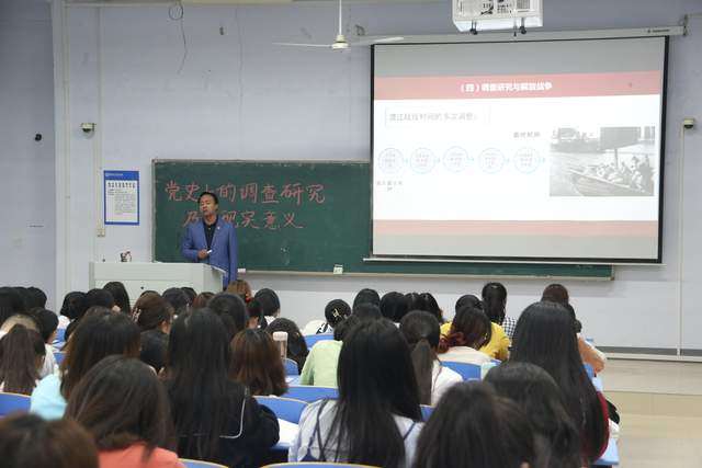 5月11日,文法学院公共管理系牛正光博士以讲述毛泽东同志的“湖南五县调查”为切入点,全面解读毛泽东同志的“不做调查就没有发言权,不做正确的调查同样没有发言权”的著名论断,深刻阐释调查研究的理论、原则和方法,全面剖析开展调查研究的现实路径。