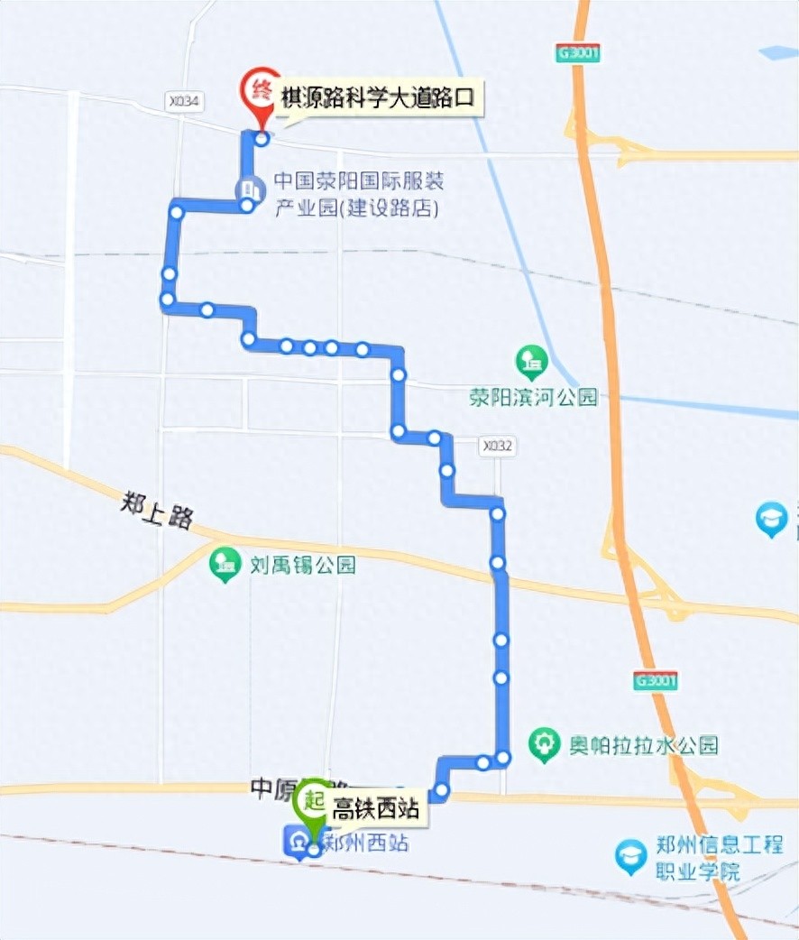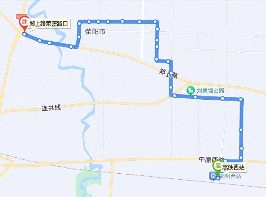 到达三十里铺西终点站后,换乘荥阳7路或10路(票价1元)到达荥阳市。