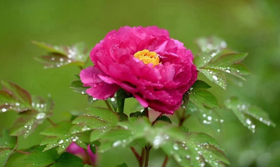 秋雨舒,怡然入,双眼眸。浅雨湿衣,浓风漫户。旅居三千里,游览花锦骨。又见净尘水影,再会夕颜祈福。花好悠然山月竹, 美景万千醉一壶。