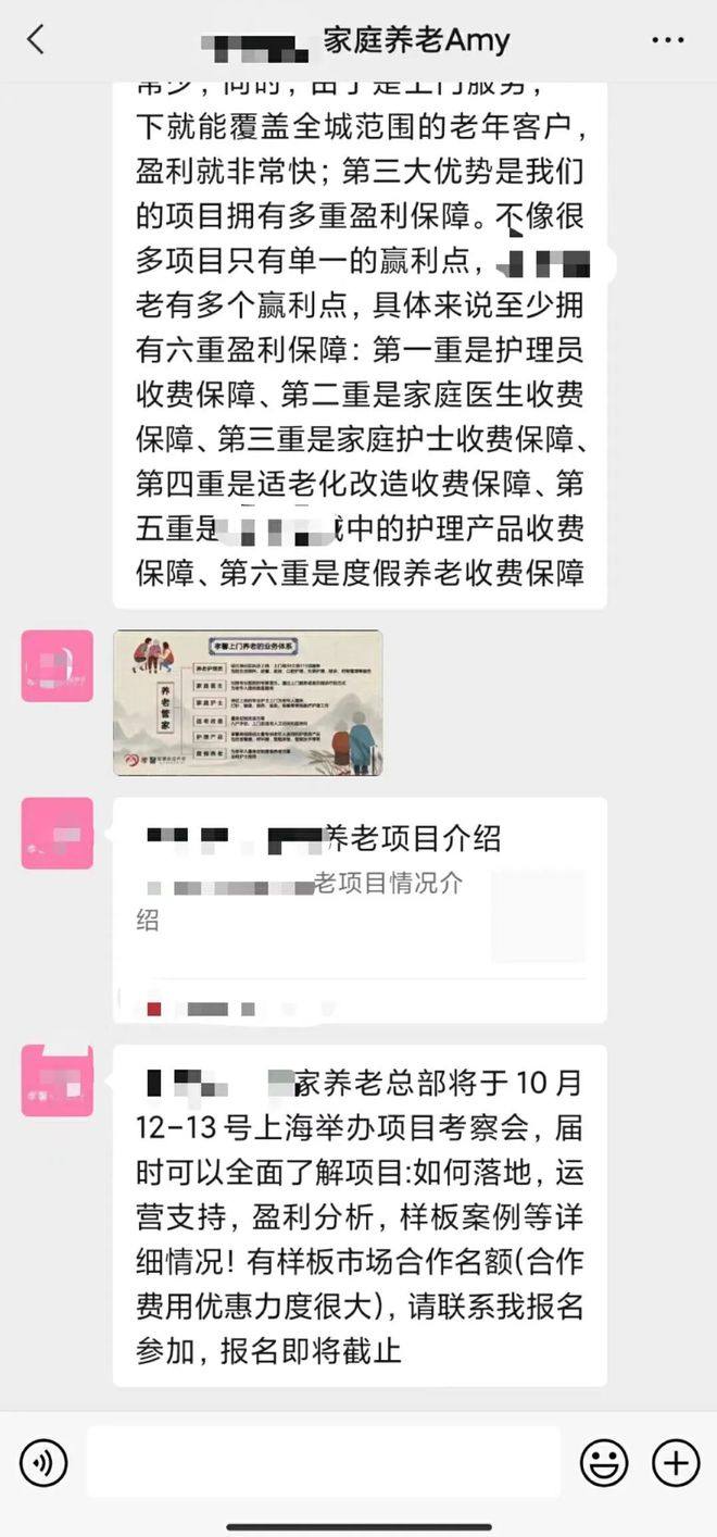 图/养老机构工作人员发的项目介绍 来源/琦琦供图