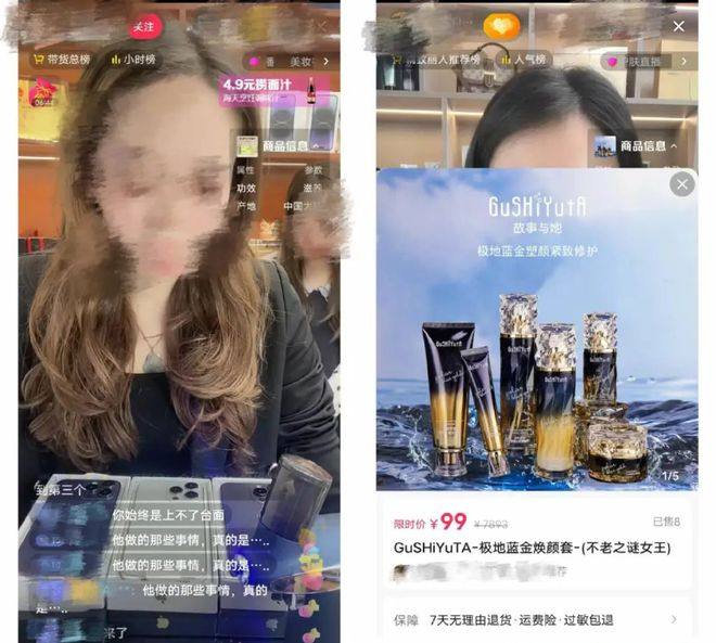 但在退出这个直播间后,短短半小时内,我又刷到好几个同样被“出轨”、故事差不多的直播间,卖的还都是我没见过名字,从几十元到几百元不等的贵妇膏、鱼子酱眼霜。我这才醒悟过来,都是妥妥的套路,然后火速回到下单的直播间,把99元买的极地焕颜套装退了。