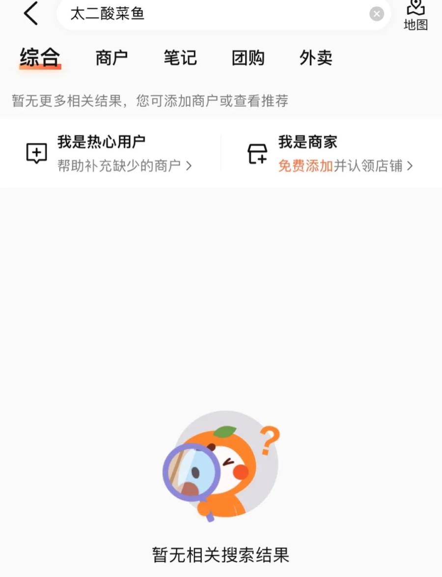 不过,或许是舆论让美团不敢真的将太二全然屏蔽,在短暂消失一天之后,太二在美团APP上又能够重新搜索到,而大众点评上依然将“太二”视为无法搜索到的词条。